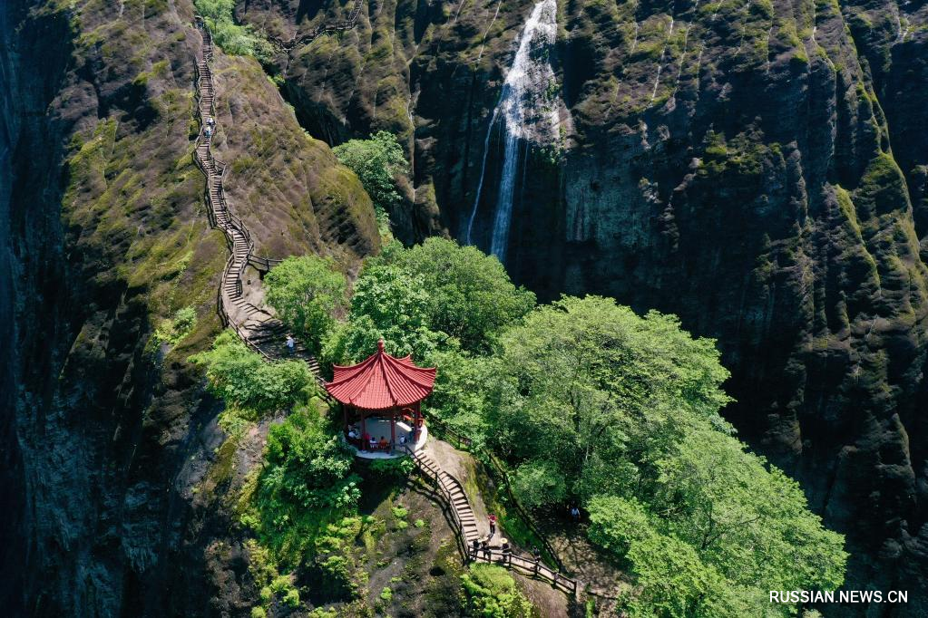 На фото -- пейзажи гор Уишань в провинции Фуцзянь /Юго-Восточный Китай/. 1 декабря 1999 года живописные горы Уишань были включены в список Всемирного наследия ЮНЕСКО одновременно по культурным и природным критериям. (Синьхуа фото)