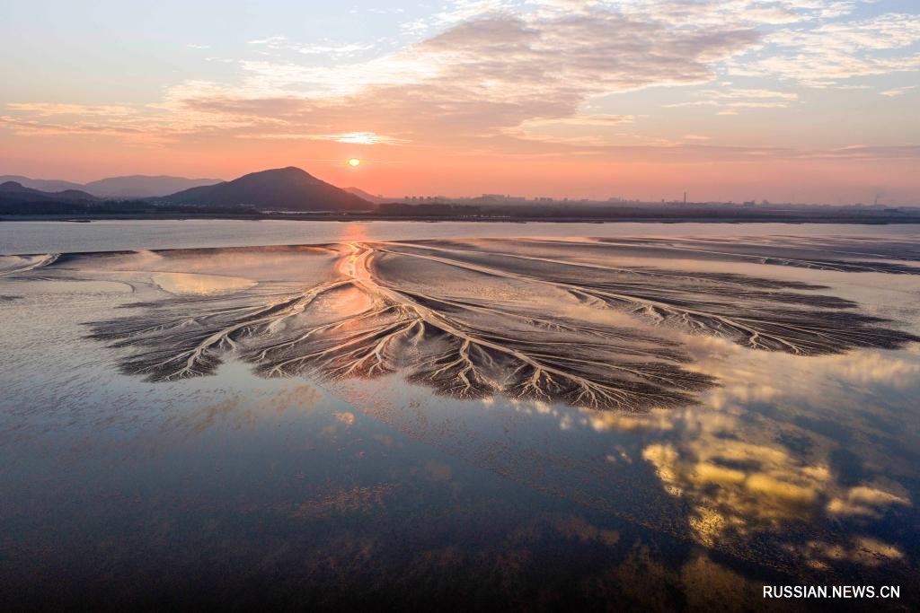 Цзясин /пров. Чжэцзян/, 14 октября /Синьхуа/ -- Во второй и третьей декадах восьмого месяца лунного календаря приливная волна на реке Цяньтан в пров. Чжэцзян /Восточный Китай/ представляет собой великолепное зрелище. После отступления приливной волны на отмелях образуются картины с уникальными "приливными деревьями" различных форм, что добавляет изюминку к наблюдениям для любующихся этим явлением.