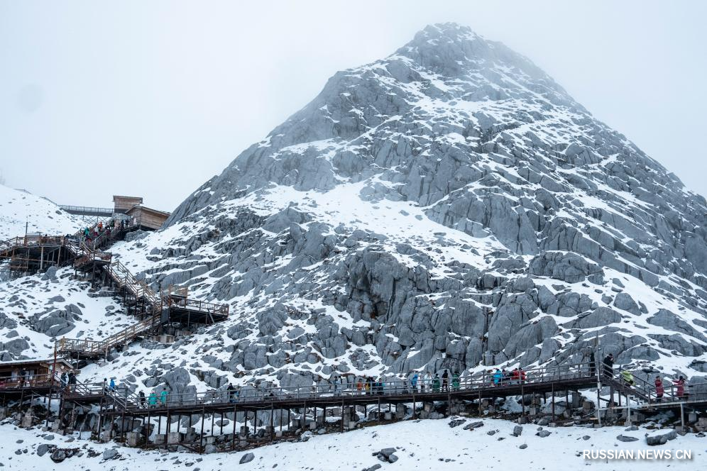 Лицзян, 27 октября /Синьхуа/ -- Большое количество туристов стекаются в Лицзян, когда в безоблачные осенние дни этот древний город и одна из главных достопримечательностей провинции Юньнань на юго-западе Китая становится еще живописнее. Туристы прибывают сюда нередко с целью любоваться горой Юйлунсюэшань, или Снежной горой Нефритового Дракона.