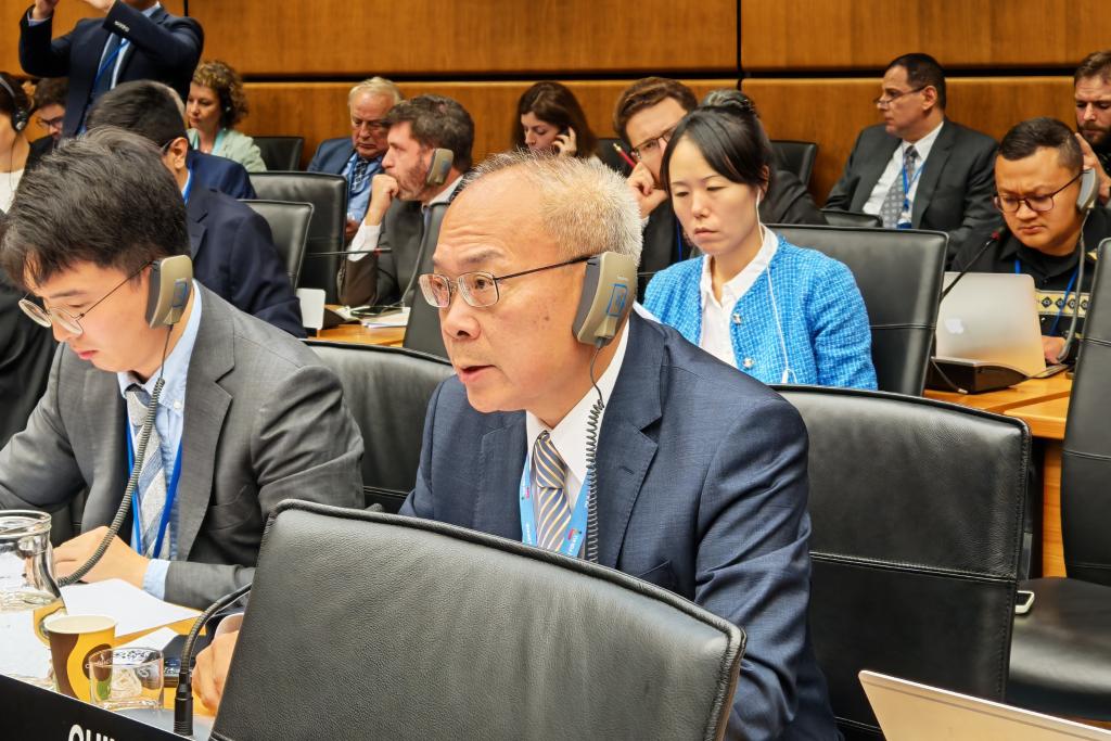 10 сентября, Вена. Постоянный представитель Китая при МАГАТЭ Ли Сун выступает с речью на заседании Совета управляющих МАГАТЭ. /Фото: Постоянное представительство КНР при Отделении ООН и других международных организациях в Вене/Синьхуа/