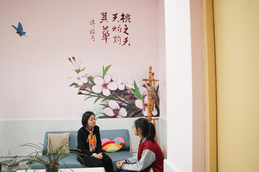 22 октября 2024 года, ученица посещает психологическую консультацию в одной из средних школ города Чжанцю провинции Шаньдун /Восточный Китай/. /Фото: Синьхуа/