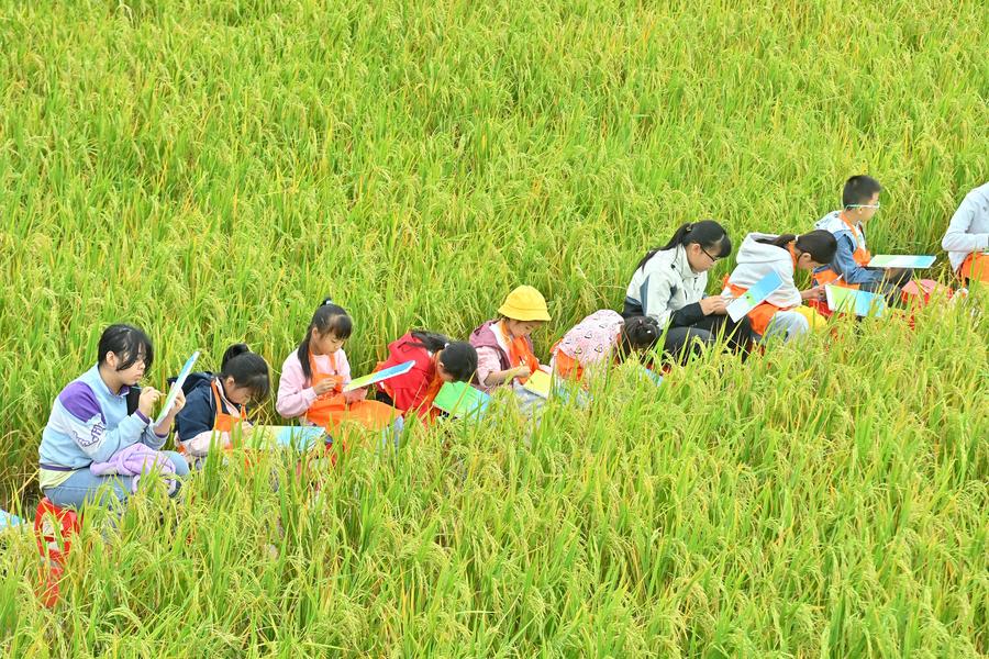 1 ноября 2025 года, дети рисуют деревенские пейзажи на территории города Лючжоу Гуанси-Чжуанского автономного района /Южный Китай/. /Фото: Синьхуа/