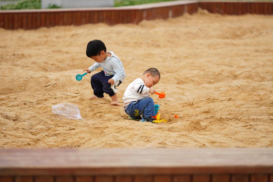 10 апреля 2025 года, мальчики играют в песочнице в парке после реконструкции, благоприятной для детей, в городе Чанша провинции Хунань /Центральный Китай/. /Фото: Синьхуа/