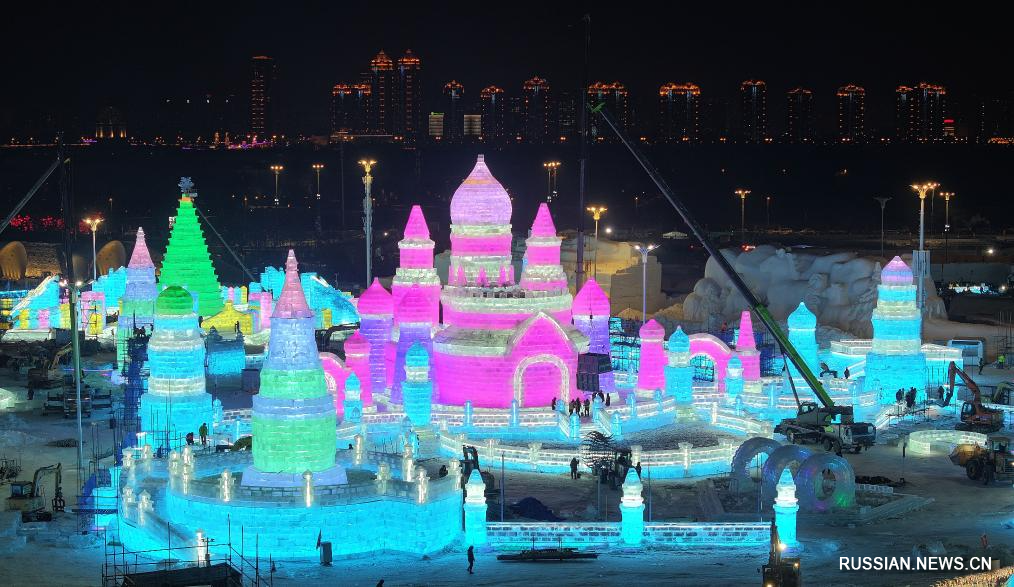 Харбин, 13 декабря /Синьхуа/ -- В настоящее время в Харбине /адм. центр провинции Хэйлунцзян, Северо-Восточный Китай/ интенсивно ведется строительство тематического парка "Большой мир льда и снега" для проведения 27-го одноименного фестиваля.