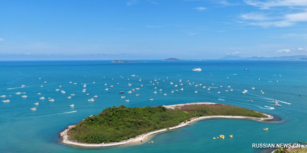 24 июня 2025 года, яхты в бухте Саньявань в городе Санья провинции Хайнань /Южный Китай/. /Фото: Синьхуа/
