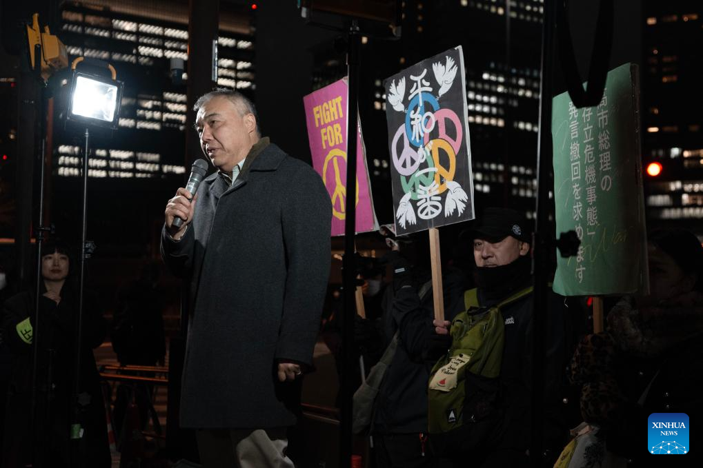 Токио, 24 декабря /Синьхуа/ -- Граждане Японии провели митинг во вторник вечером перед офисом главы правительства в Токио, требуя, чтобы премьер-министр Санаэ Такаити отказалась от своих ошибочных высказываний о Тайване, и критикуя комментарии высокопоставленного правительственного чиновника, выступающего за ядерное вооружение.