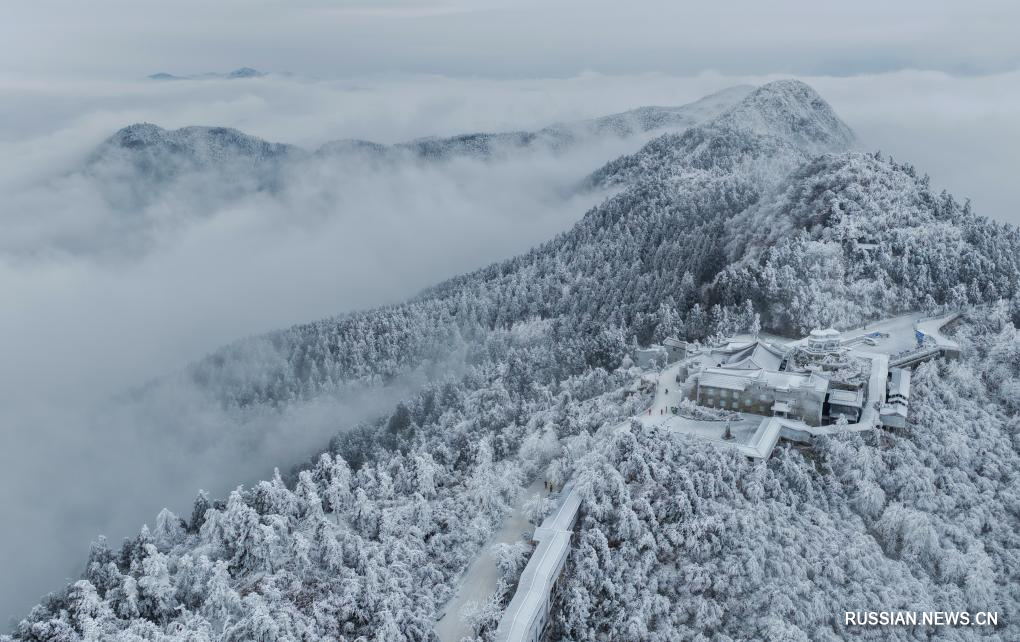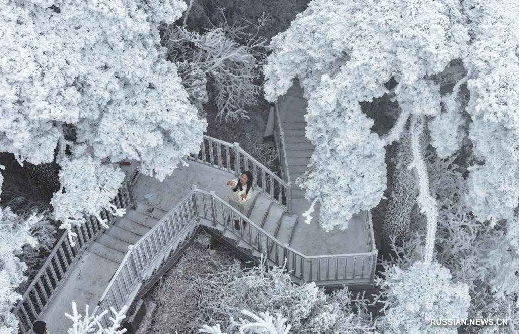 Хэнъян /пров. Хунань/, 24 января /Синьхуа/ -- В последние дни живописную местность горы Хэншань, расположенную на территории города Хэнъян /пров. Хунань, Центральный Китай/, накрыло белым покрывалом из льда и инея. Заснеженные гора и лес привлекают множество посетителей, которые приезжают сюда полюбоваться зимними пейзажами.