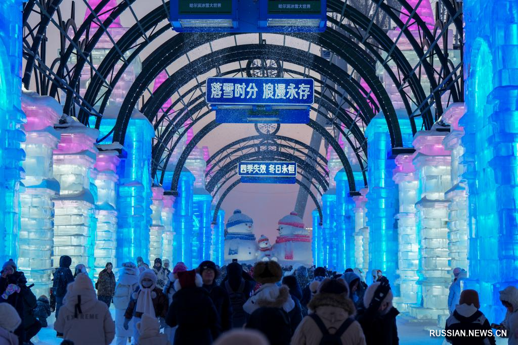 Харбин, 28 января /Синьхуа/ -- В разгар зимы парк "Большой мир льда и снега" в городе Харбин пров. Хэйлунцзян /Северо-Восточный Китай/ переливается яркими огнями и привлекает многочисленных туристов, приезжающих полюбоваться и насладиться очарованием льда и снега.