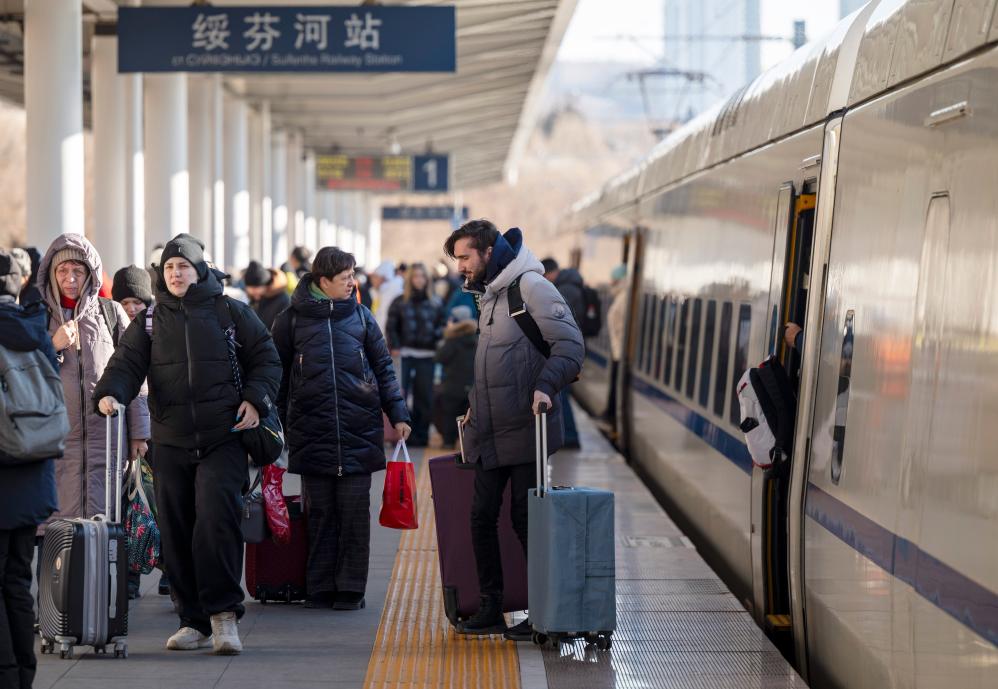 8 января 2026 года, пассажиры выходят из поезда на железнодорожном вокзале Суйфэньхэ в одноименном городе /пров. Хэйлунцзян, Северо-Восточный Китай/. /Фото: Синьхуа/
