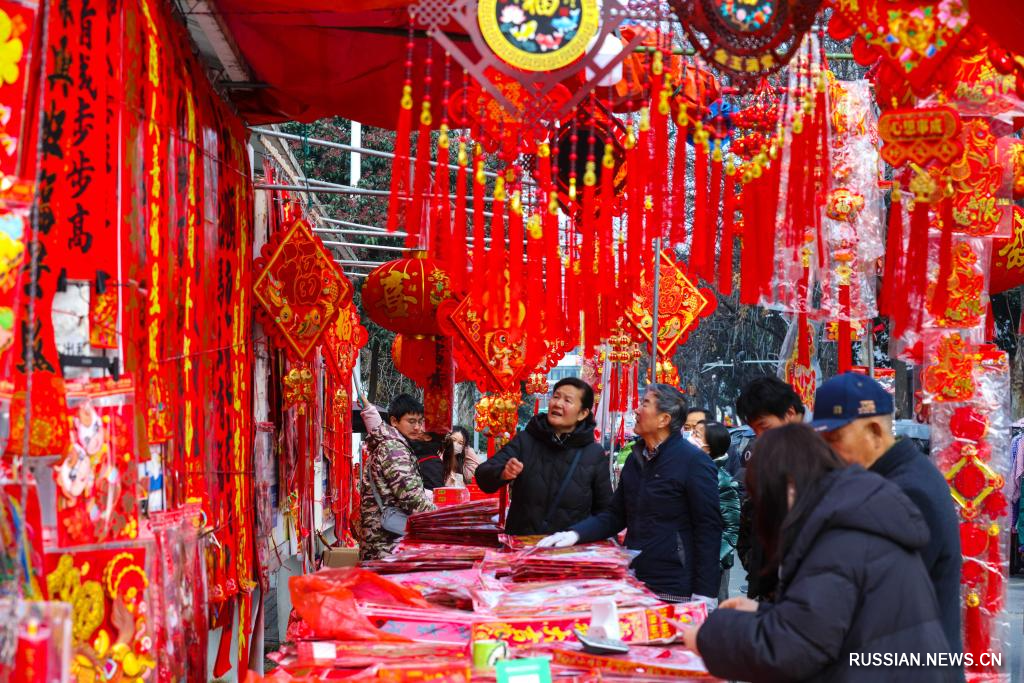 Пекин, 6 февраля /Синьхуа/ -- Базары с огромнейшим ассортиментом разнообразных товаров на любой вкус, парные новогодние надписи на красной бумаге, цветы, узелковые плетения ... В Китае полным ходом идут приготовления к приближающемуся празднику Весны /Чуньцзе, традиционный китайский Новый год по лунному календарю/.