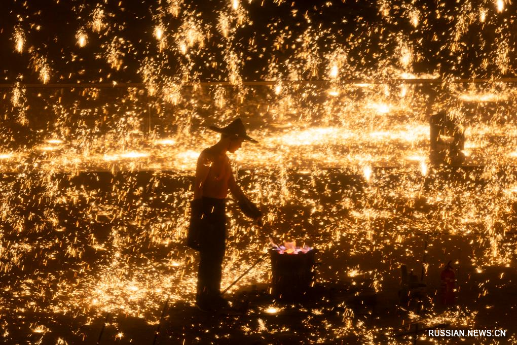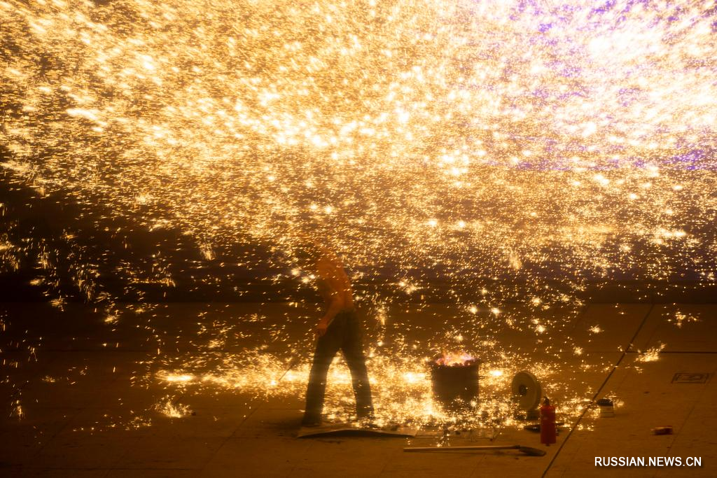 Потрясающее "шоу фейерверков" из расплавленного чугуна в Шанхае