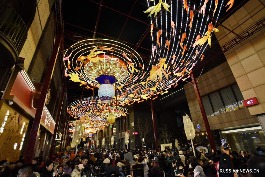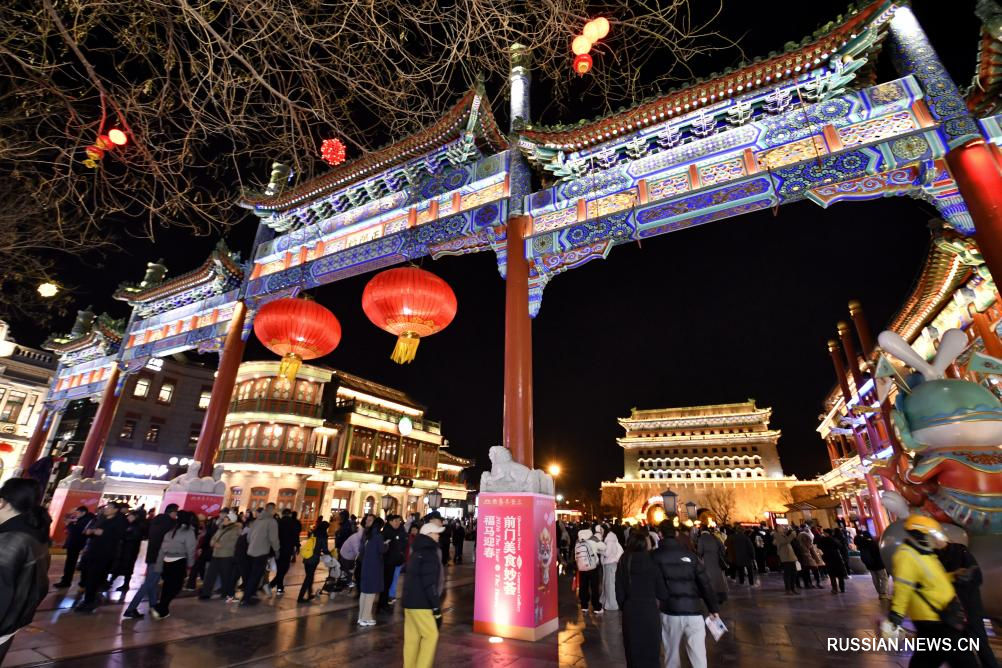 Пекин, 17 февраля /Синьхуа/ -- В каникулы по случаю праздника Весны /Чуньцзе, традиционный китайский Новый год по лунному календарю/ множество людей приезжают на улицу Цяньмэнь Дацзе в историческом центре китайской столицы, чтобы погулять по старинным переулочкам, попробовать традиционные уличные лакомства, ощутить дух древнего Пекина.