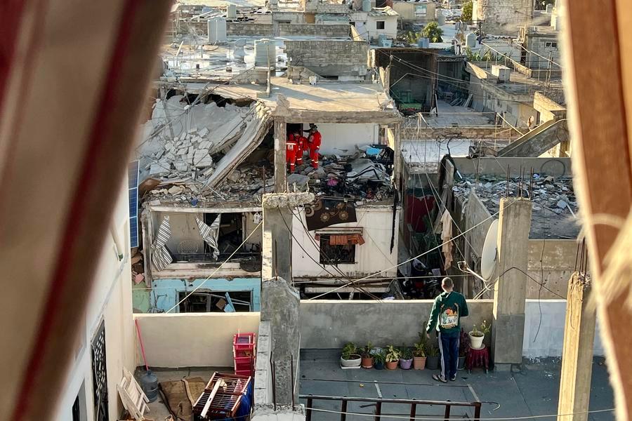 8 марта, Сайда, Ливан. Спасатели осматривают разрушения, вызванные израильскими авиаударами в лагере палестинских беженцев Айн-эль-Хильве в городе Сайда /Южный Ливан/. /Фото: Синьхуа/