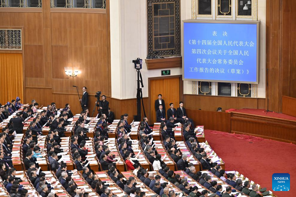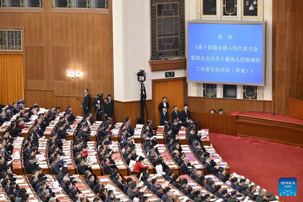 Законодатели путем голосования приняли резолюцию по докладу о работе Постоянного комитета Всекитайского собрания народных представителей /ПК ВСНП/, резолюцию по докладу о работе Верховного народного суда КНР и резолюцию по докладу о работе Верховной народной прокуратуры КНР.