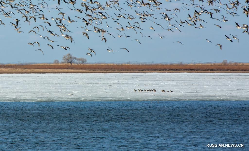 Харбин, 24 марта /Синьхуа/ -- По мере таяния льда и снега в самой северной китайской провинции Хэйлунцзян различные перелетные птицы постепенно возвращаются на местные водно-болотные угодья и водные территории, добавляя жизни в весенние пейзажи.