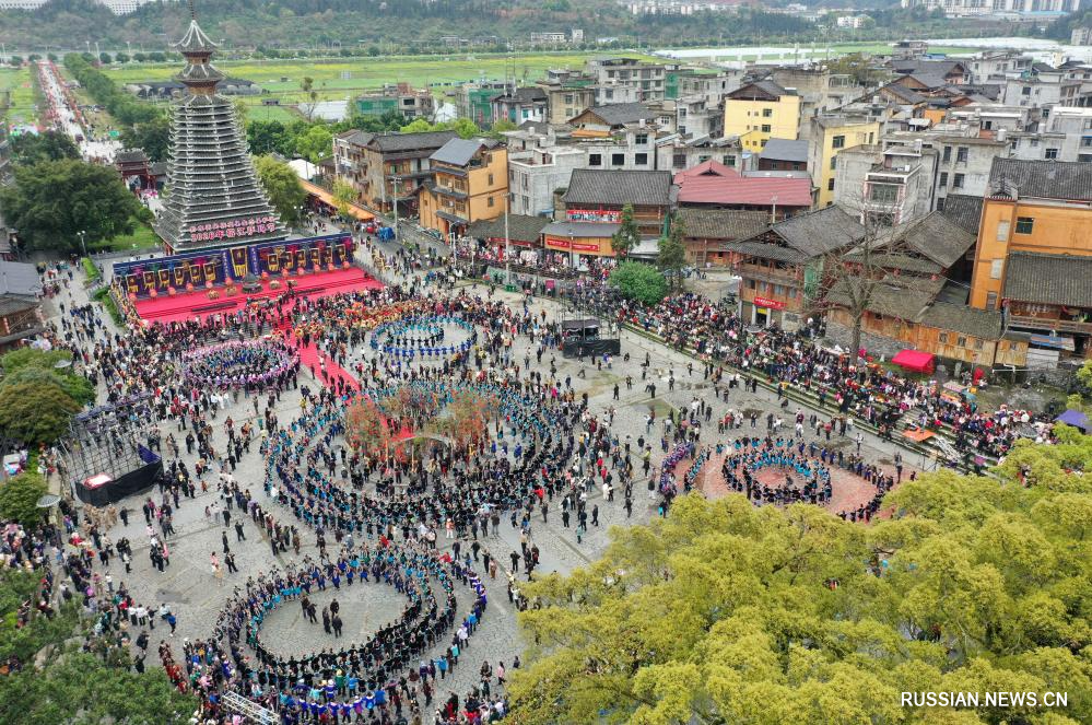 Жунцзян /пров. Гуйчжоу/, 29 марта /Синьхуа/ -- В субботу представители национальности дун в поселении Саньбао уезда Жунцзян провинции Гуйчжоу /Юго-Западный Китай/ провели мероприятия, посвященные Фестивалю богини Сама.