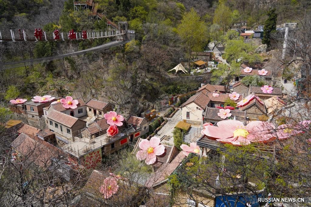 Цзыбо /пров. Шаньдун/, 9 апреля /Синьхуа/ -- В настоящее время цветы распускаются в туристическом районе Hongye Shiyan /"Скала краснолистной хурмы"/ города Цзыбо в провинции Шаньдун /Восточный Китай/. Создание новых, оригинальных сценариев и интеграция бизнес-форматов способствуют расширению цепочек в туризме и потреблении, делая любование цветами важным направлением в местной экономике.