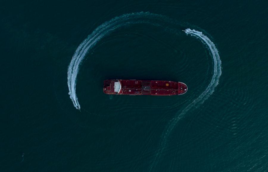 21 июля 2019 года, Ормузский залив. Британский нефтяной танкер "Стена Имперо", окруженный быстроходными катерами Корпуса стражей исламской революции Ирана /КСИР/ в Ормузском проливе. /Фото: Синьхуа/