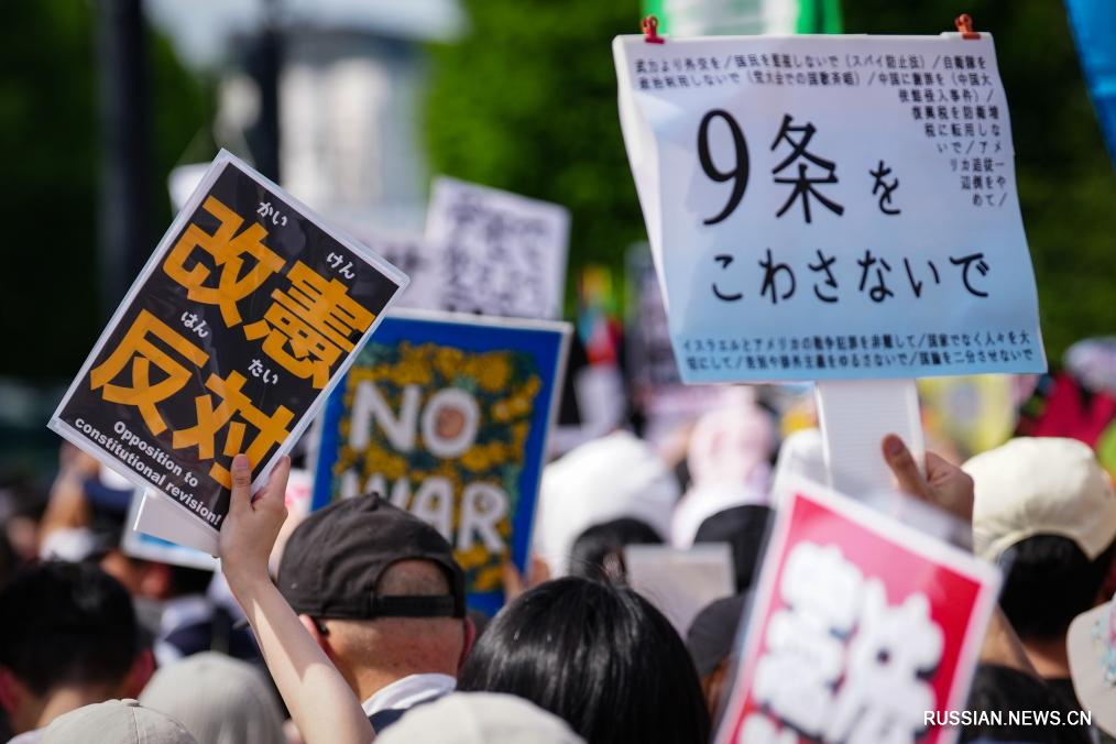Токио, 19 апреля /Синьхуа/ -- Десятки тысяч японцев собрались в воскресенье у здания парламента в Токио, чтобы выразить свой протест против попыток правительства премьер-министра Санаэ Такаити протолкнуть пересмотр пацифистской Конституции Японии и чтобы призвать к защите ее 9-й статьи.