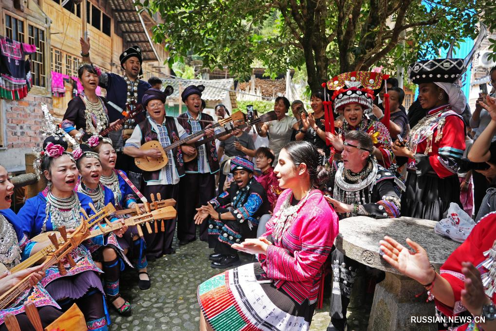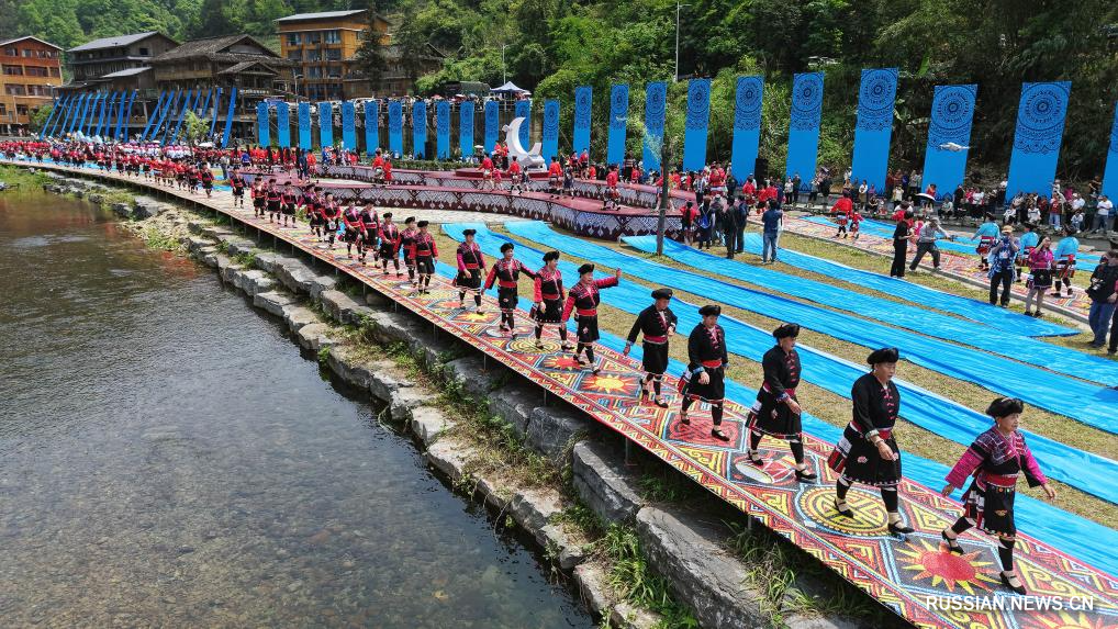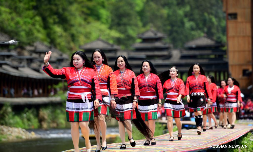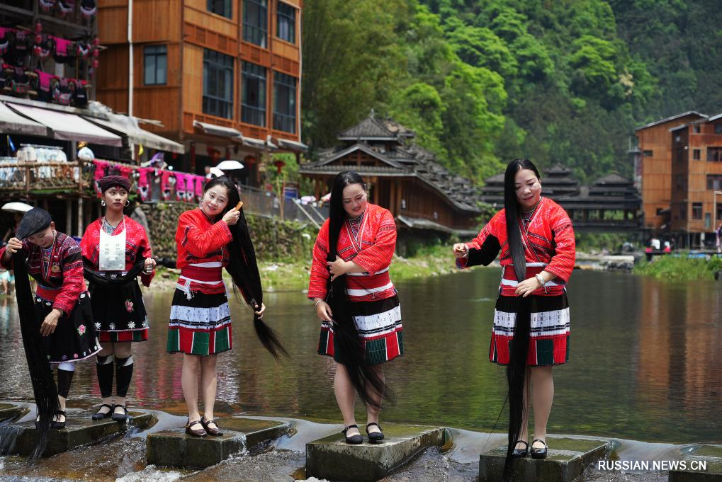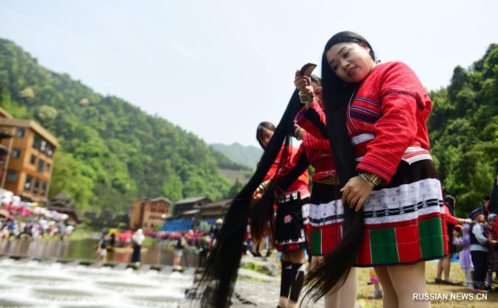 Луншэн /Гуанси-Чжуанский АР/, 20 апреля /Синьхуа/ -- Показ длинных волос, дефиле, песенный диалог и танцы - в числе мероприятий, прошедших по случаю праздника "третье число третьего месяца" по лунному календарю в уезде Луншэн 19 апреля. Фестиваль длинных волос является визитной карточкой местной деревни Хуанло, населенной преимущественно красными яо - частью народа яо.