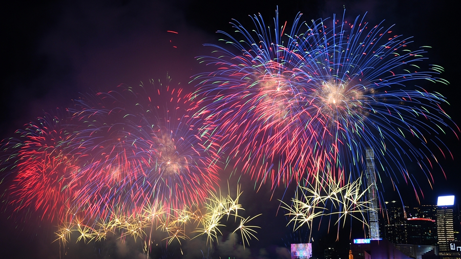 Фейерверк-шоу по случаю Национального праздника КНР в Сянгане