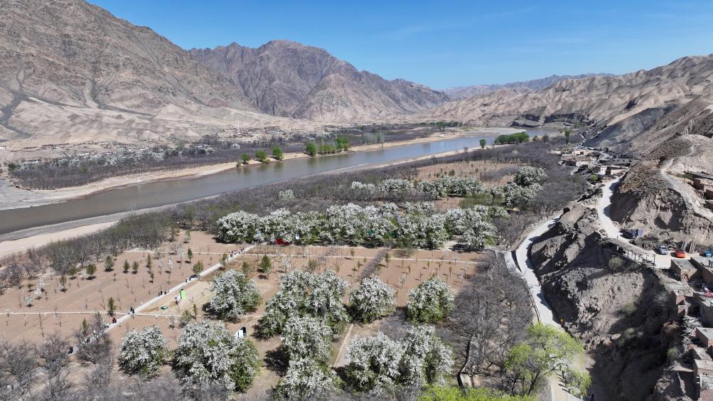 Цветущие 100-летние грушевые деревья украшают берега реки Хуанхэ