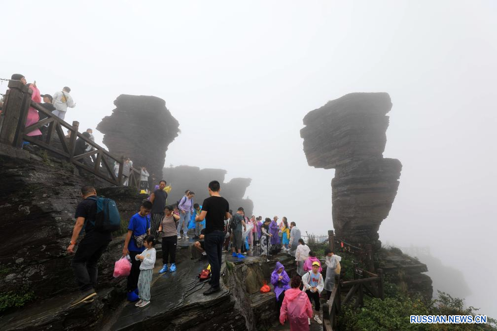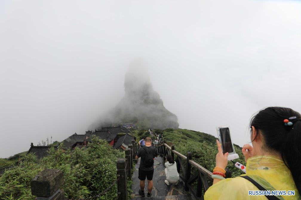 Цзянкоу /пров. Гуйчжоу/, 15 августа /Синьхуа/ -- В последнее время прекрасные пейзажи горы Фаньцзиншань, расположенной в провинции Гуйчжоу /Юго-Западный Китай/, которая является природной охраняемой территорией государственного уровня, привлекает множество туристов. Здесь было зарегистрировано более 2 700 видов диких животных и более 4 300 видов растений, а лесистость составляет 97 проц. В 2018 году гора Фаньцзиншань была внесена в список Всемирного наследия ЮНЕСКО.