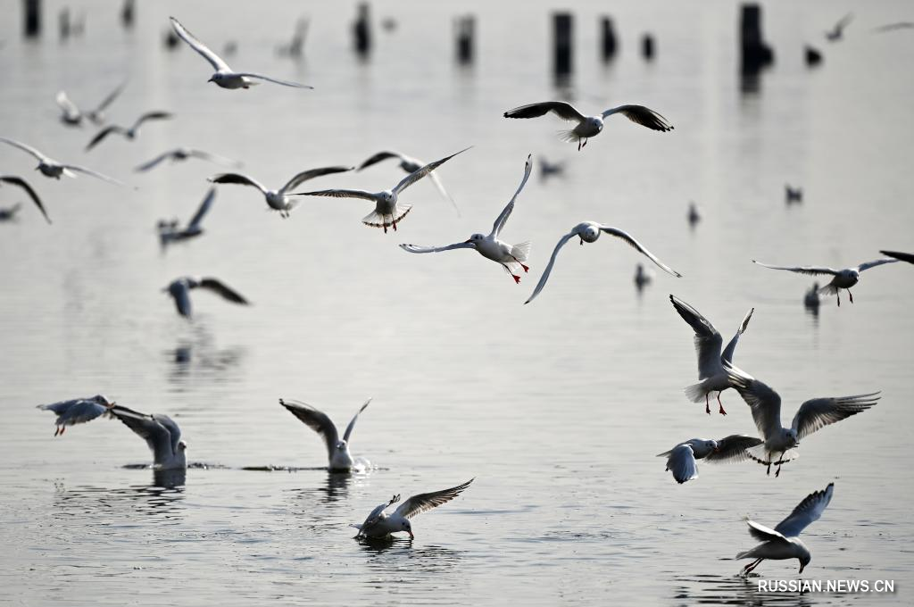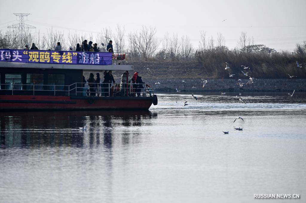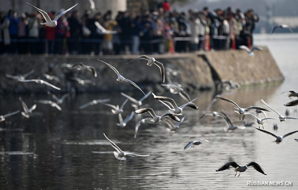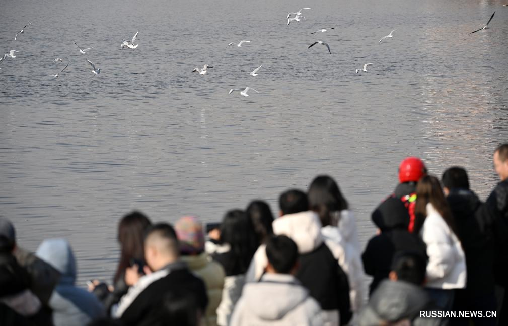Тяньцзинь, 27 ноября /Синьхуа/ -- В начале зимы в городе Тяньцзинь на севере Китая наблюдался пик миграции перелетных птиц. К берегам реки Хайхэ из Сибири на зимовку прилетело большое количество чаек, что привлекло внимание многочисленных туристов.