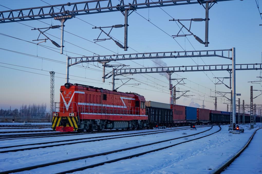 25 декабря 2024 года, грузовой поезд Китай-Европа проходит через ж/д КПП Хоргос. /Фото: Синьхуа/