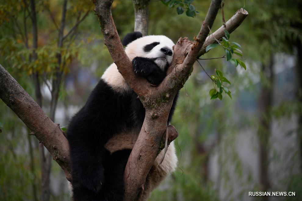 Большие панды на исследовательской базе по разведению больших панд в г. Чэнду