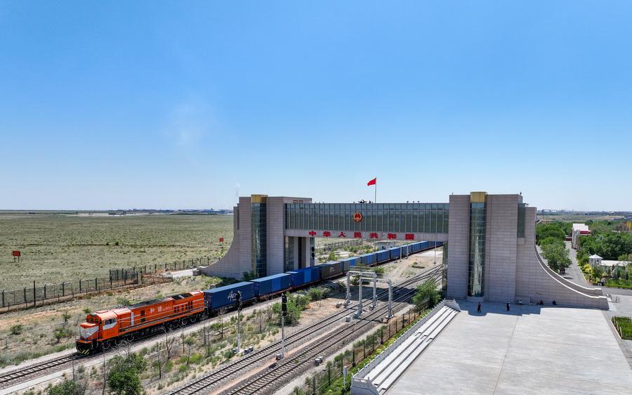 22 июня 2025 года, на снимке запечатлен грузовой поезд Китай-Европа, выезжающий за границу через ж/д КПП Эрэн-Хото на севере Китая. /Фото: Синьхуа/