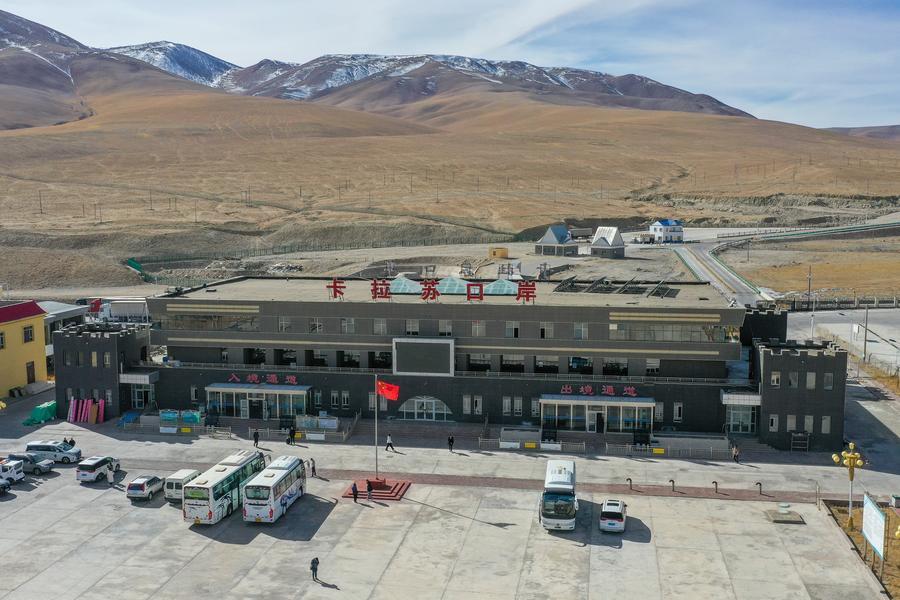 На аэрофотоснимке от 6 ноября 2023 года запечатлен КПП Карасу в Синьцзян-Уйгурском автономном районе. /Фото: Синьхуа/