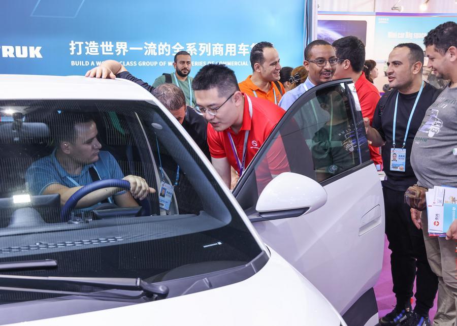 15 апреля 2024 года, закупщики рассматривают автомобиль на новых источниках энергии на 135-й Китайской ярмарке импортных и экспортных товаров, известной как Гуанчжоуской или Кантонской. /Фото: Синьхуа/