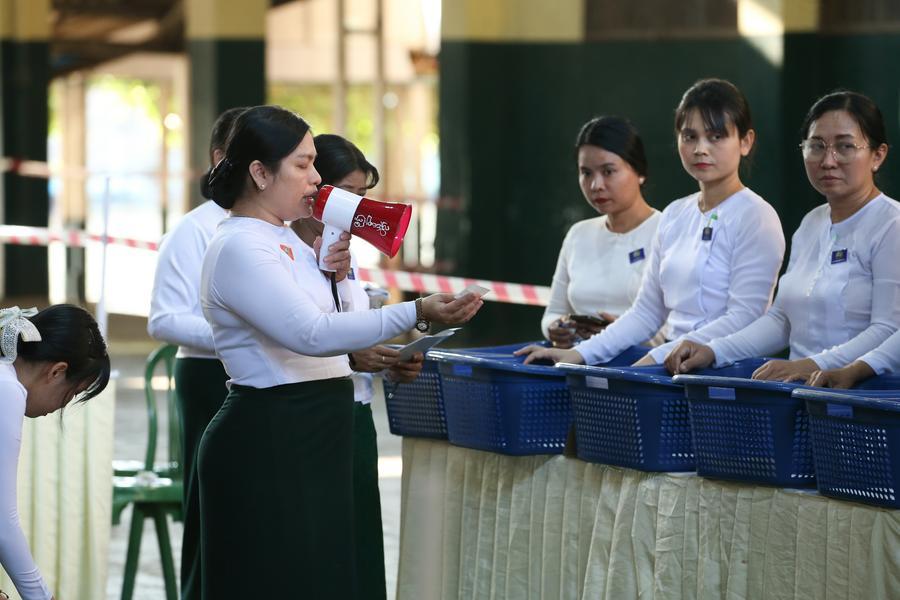 25 января, Янгон. Сотрудники Союзной избирательной комиссии Мьянмы подсчитывают голоса избирателей на одном из избирательных участков в Янгоне. /Фото: Синьхуа/