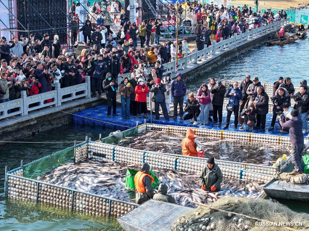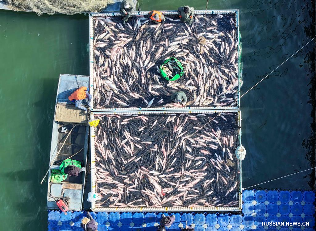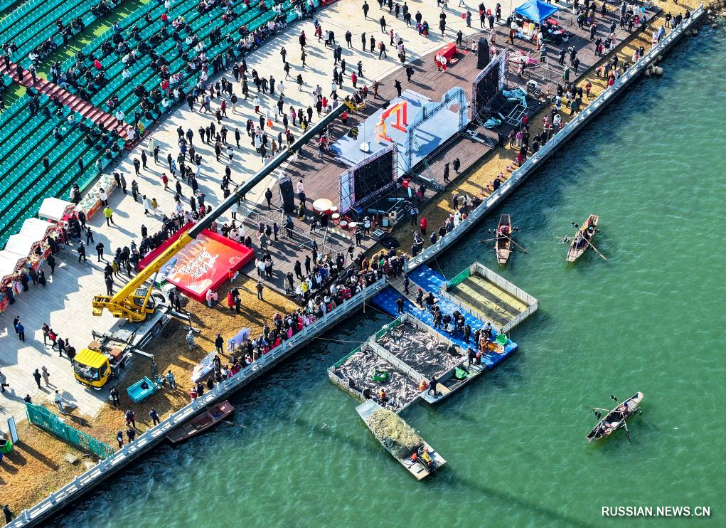 Тайчжоу /пров. Цзянсу/, 1 февраля /Синьхуа/ -- В субботу в акватории озера Циньху, расположенного на территории города Тайчжоу провинции Цзянсу /Восточный Китай/, состоялась зимняя рыбалка, что создало радостную картину обильного улова.