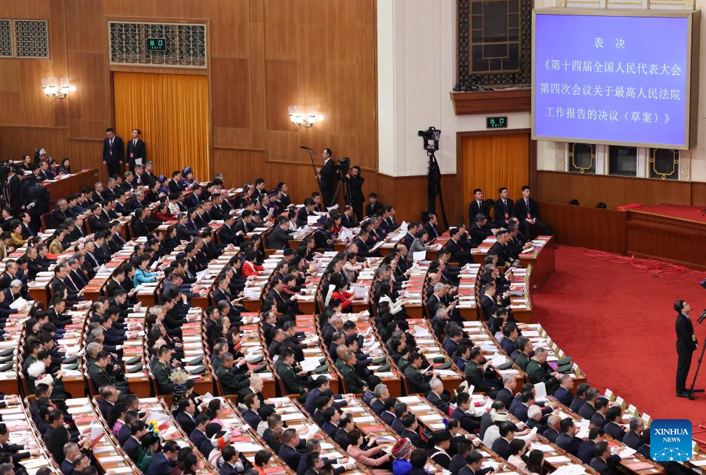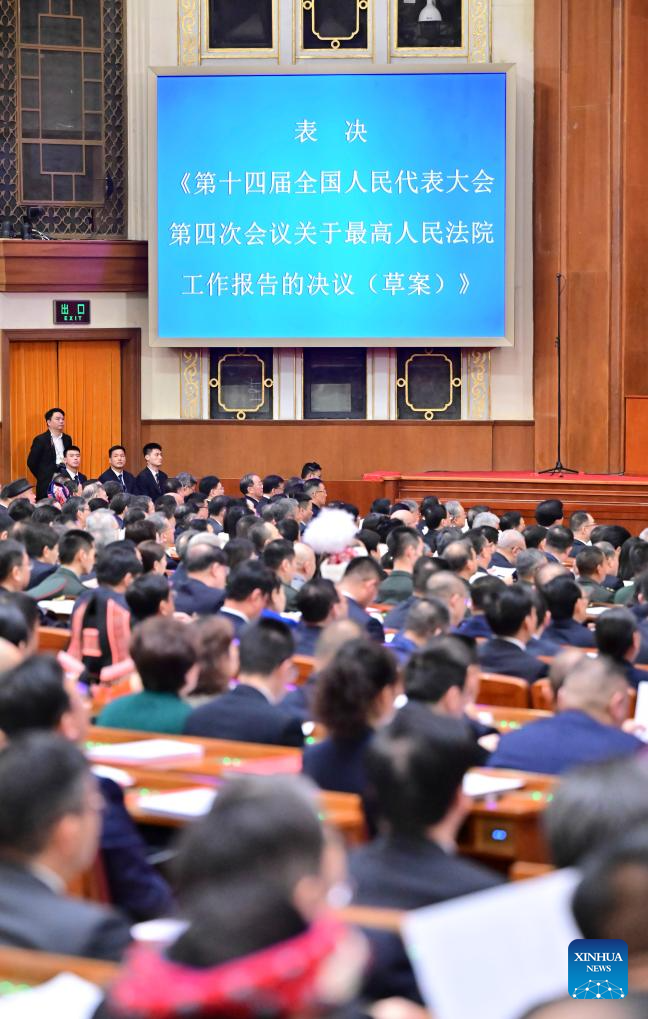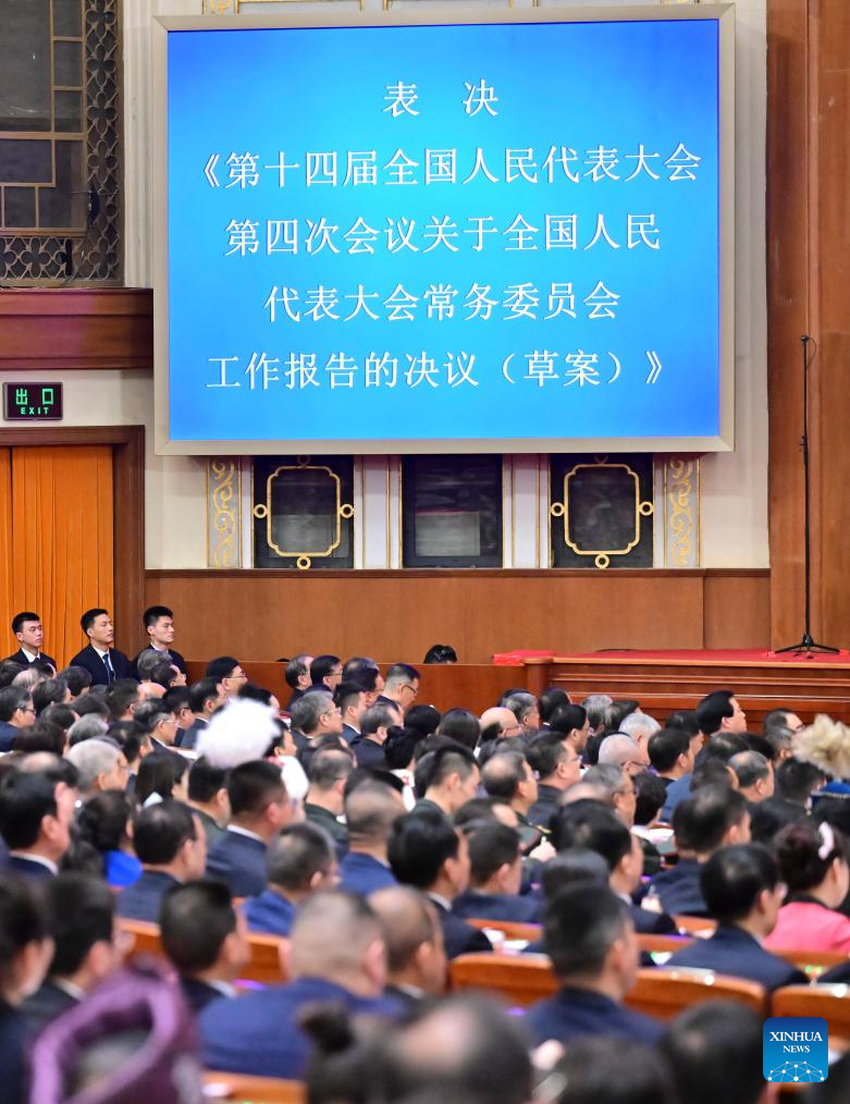 Законодатели путем голосования приняли резолюцию по докладу о работе Постоянного комитета Всекитайского собрания народных представителей /ПК ВСНП/, резолюцию по докладу о работе Верховного народного суда КНР и резолюцию по докладу о работе Верховной народной прокуратуры КНР.