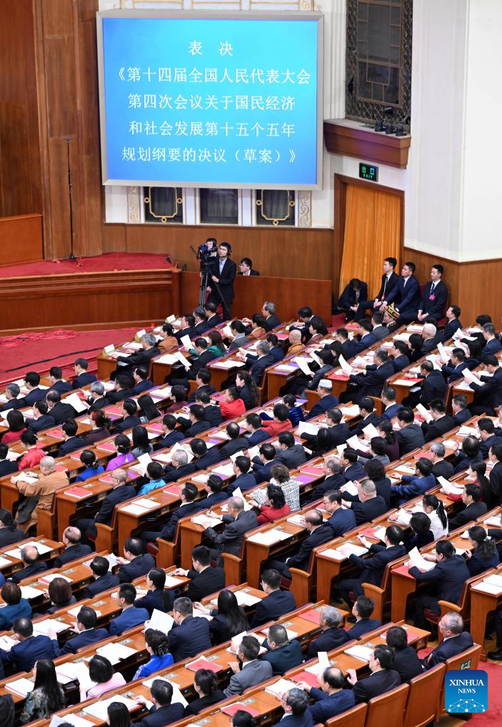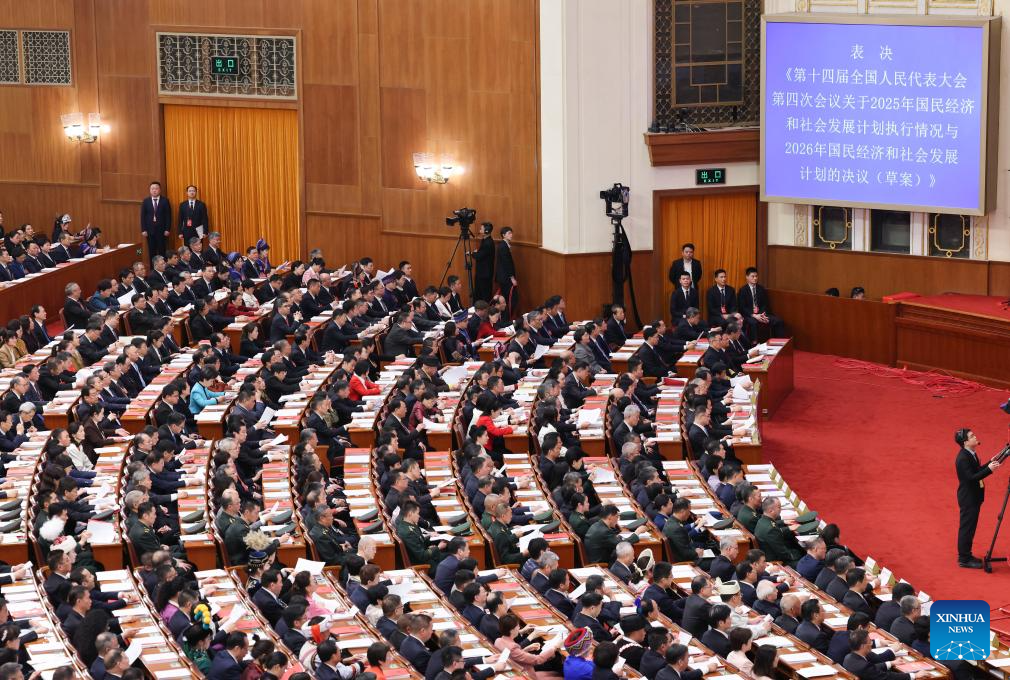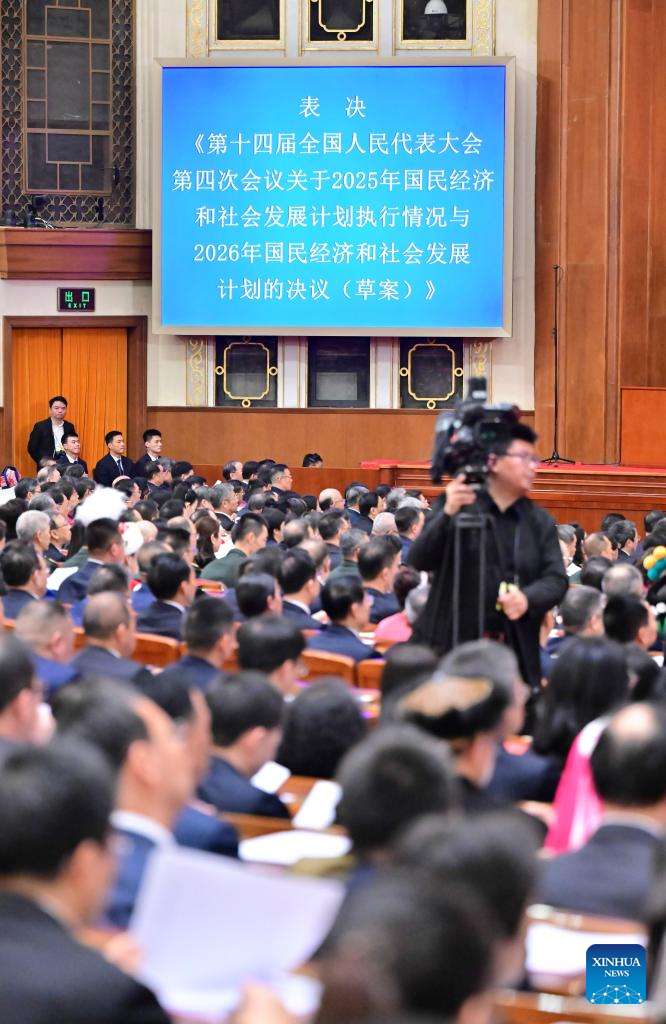 На заседании путем голосования были приняты резолюции по докладу о работе правительства и основным положениям 15-й пятилетней программы народнохозяйственного и социального развития /2026-2030 гг./.