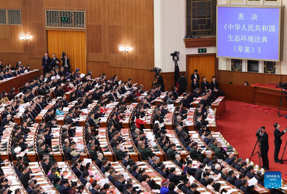 Китайские законодатели путем голосования приняли Кодекс об экологии и окружающей среде, Закон о содействии национальной сплоченности и прогрессу и Закон о планировании национального развития.