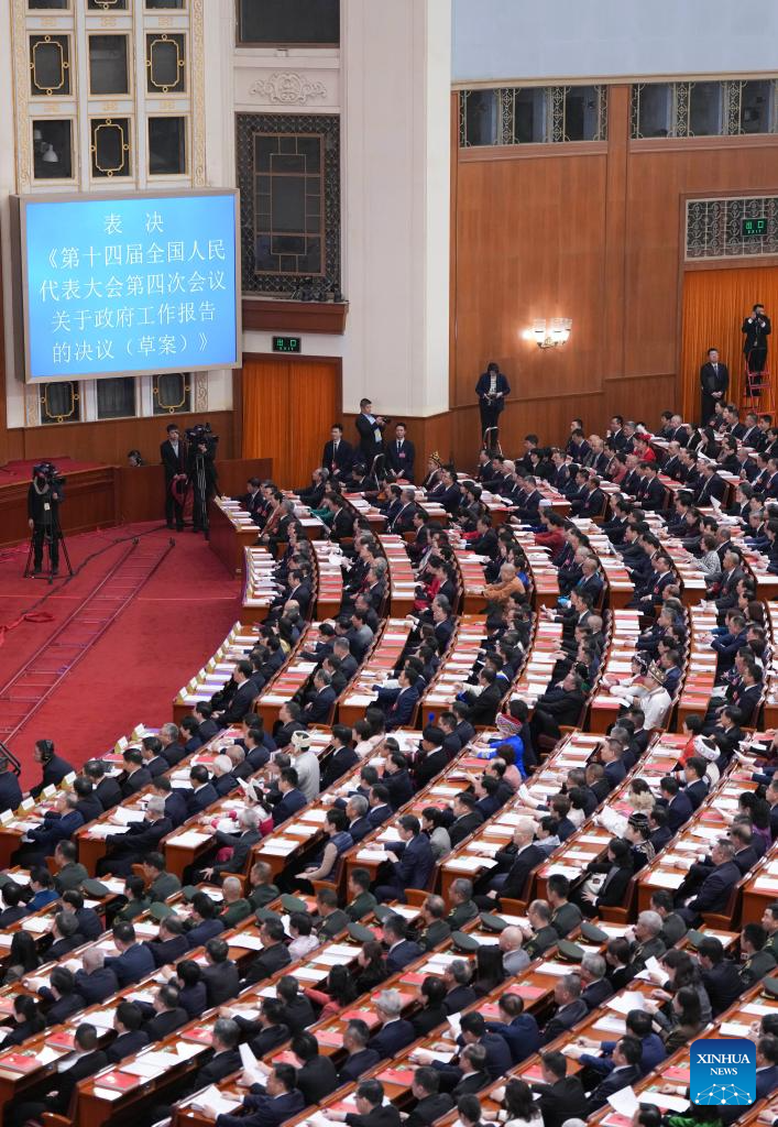 Пекин, 12 марта /Синьхуа/ -- В четверг в Доме народных собраний в Пекине состоялось заключительное заседание 4-й сессии Всекитайского собрания народных представителей /ВСНП/ 14-го созыва.