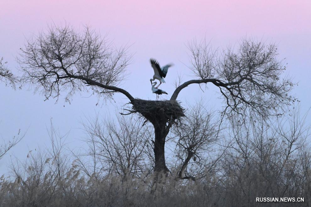 Харбин, 24 марта /Синьхуа/ -- По мере таяния льда и снега в самой северной китайской провинции Хэйлунцзян различные перелетные птицы постепенно возвращаются на местные водно-болотные угодья и водные территории, добавляя жизни в весенние пейзажи.