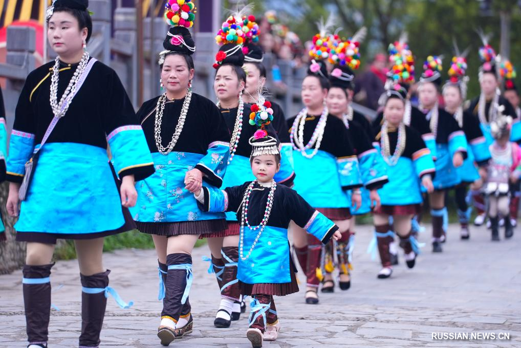 Представители национальности дун отмечают Фестиваль богини Сама на юго-западе Китая