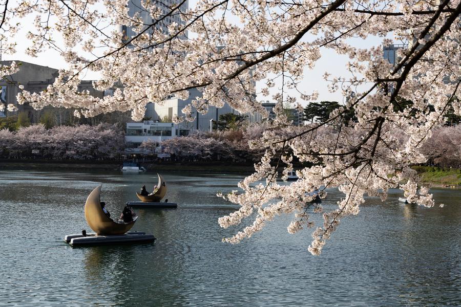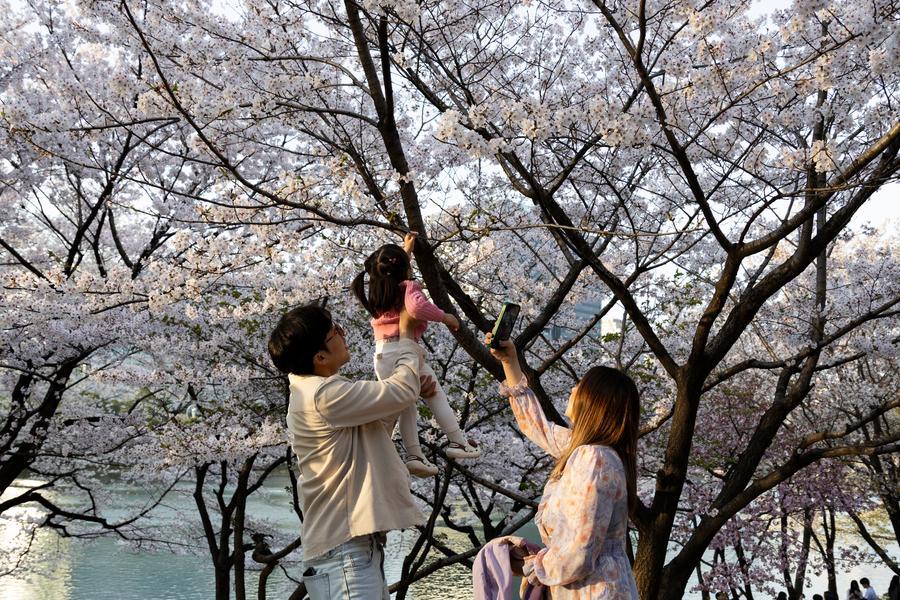Сеул, 7 апреля /Синьхуа/ -- Сезон цветения сакуры в Сеуле сейчас в самом разгаре. Озеро Сокчхон привлекает множество людей, желающих насладиться живописными весенними пейзажами.