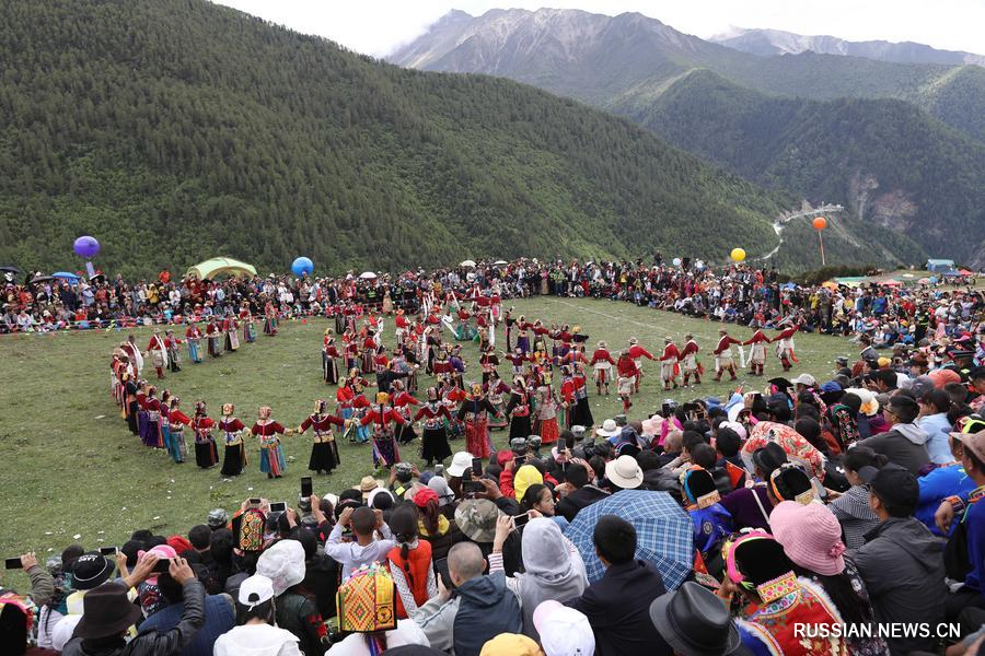 6 июня 2019 года, местные жители посещают ритуал, проводимый в горах Сыгунян в уезде Сяоцзинь провинции Сычуань /Юго-Западный Китай/. /Фото: Синьхуа/