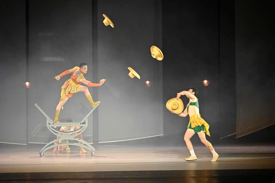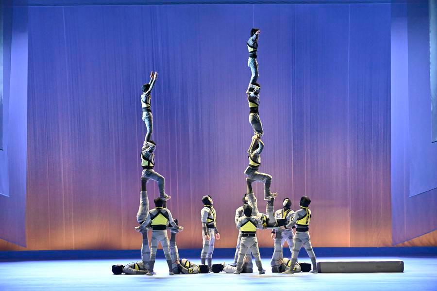24 апреля, Москва. Китайская акробатическая драма "Лебедь" в исполнении Гуанчжоуской акробатической труппы на сцене Большого театра. /Фото: Синьхуа/