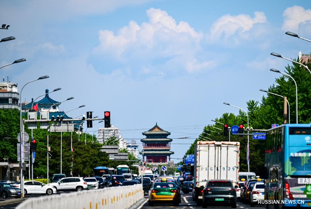 Пекин, 29 апреля /Синьхуа/ -- В эти дни в китайской столице стоит прекрасная и ясная погода. Ясное голубое небо и легкие белые облака создают живописный фон для городского пейзажа. Этот природный холст подчеркивает уникальную архитектуру Пекина: удачное сочетание традиций древнего зодчества и стиля современных сооружений.