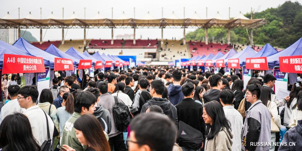 Гуйян, 27 апреля /Синьхуа/ -- В субботу в городе Гуйян пров. Гуйчжоу /Юго-Западный Китай/ открылась 13-я провинциальная ярмарка вакансий. Организаторы мероприятия в онлайновом и оффлайновом режиме опубликовали более 63 тыс. вакансий, что привлекло множество соискателей.