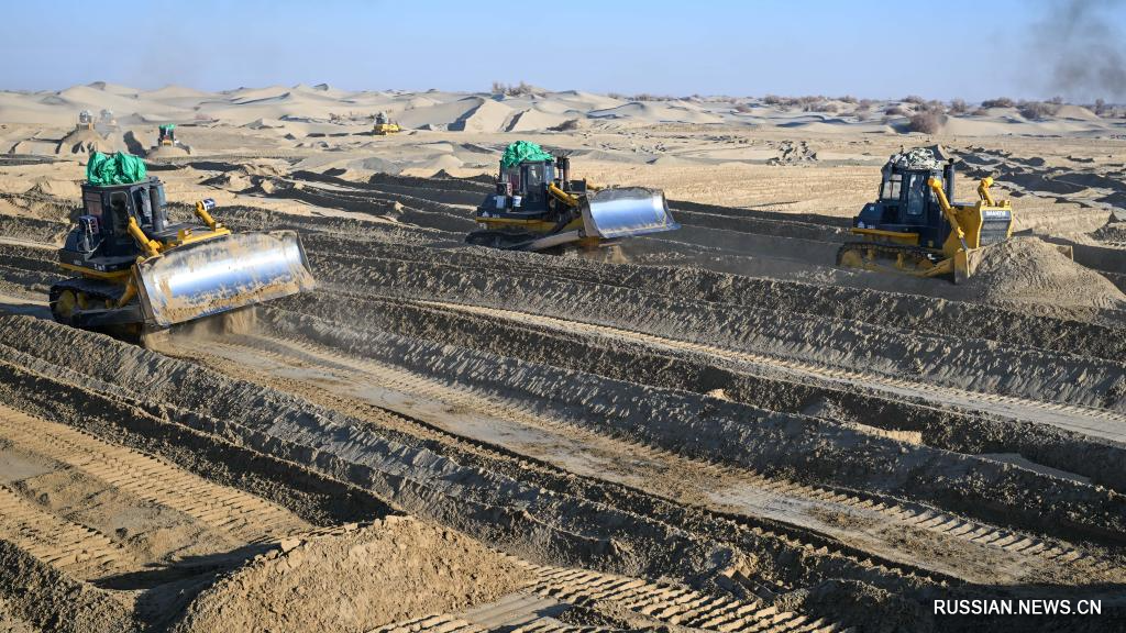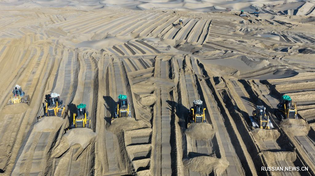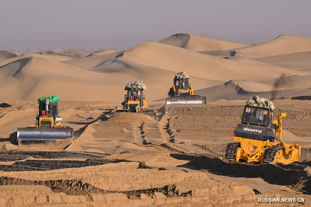 В пустыне Такла-Макан на северо-западе Китая полным ходом идет закрепление песков