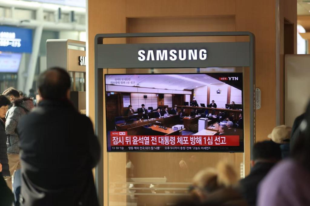 16 января, Сеул. Люди смотрят телевизионный репортаж о Юн Сок Еле. /Фото: Синьхуа/